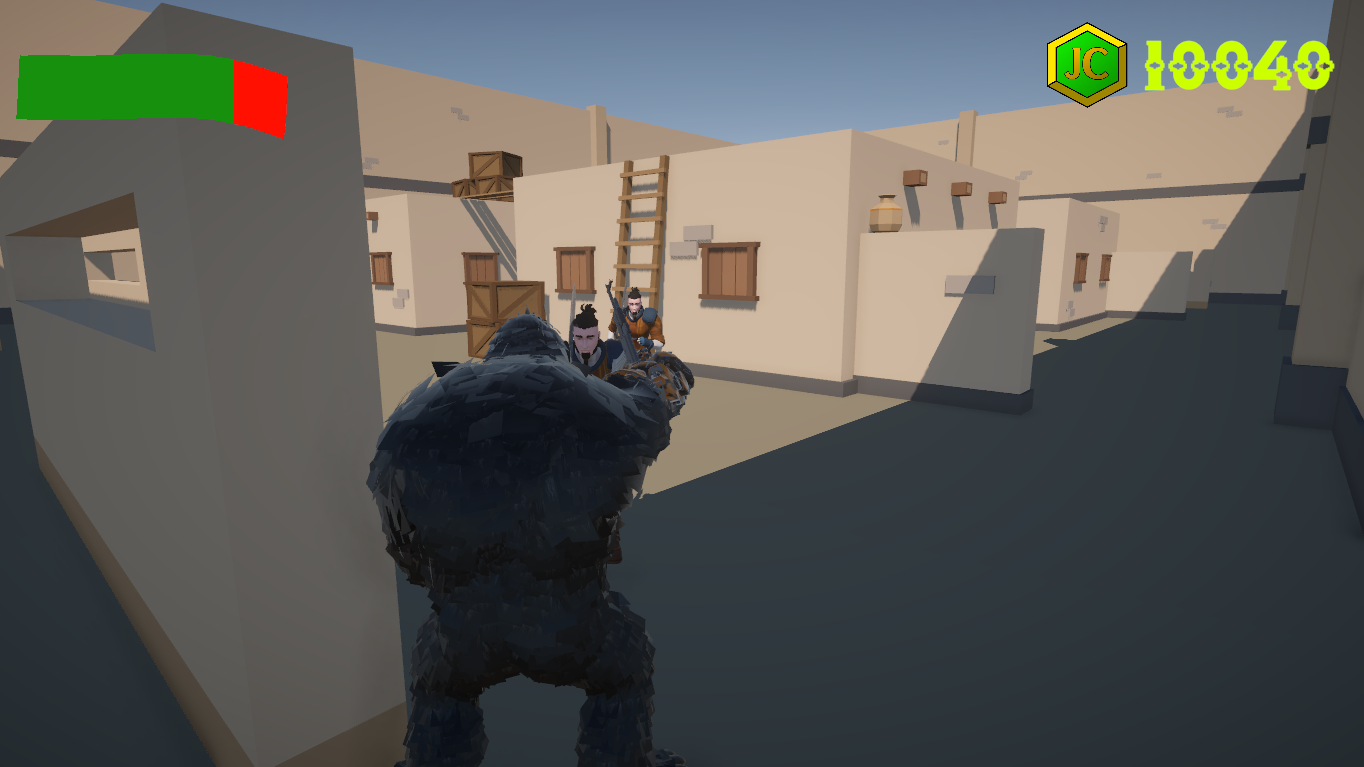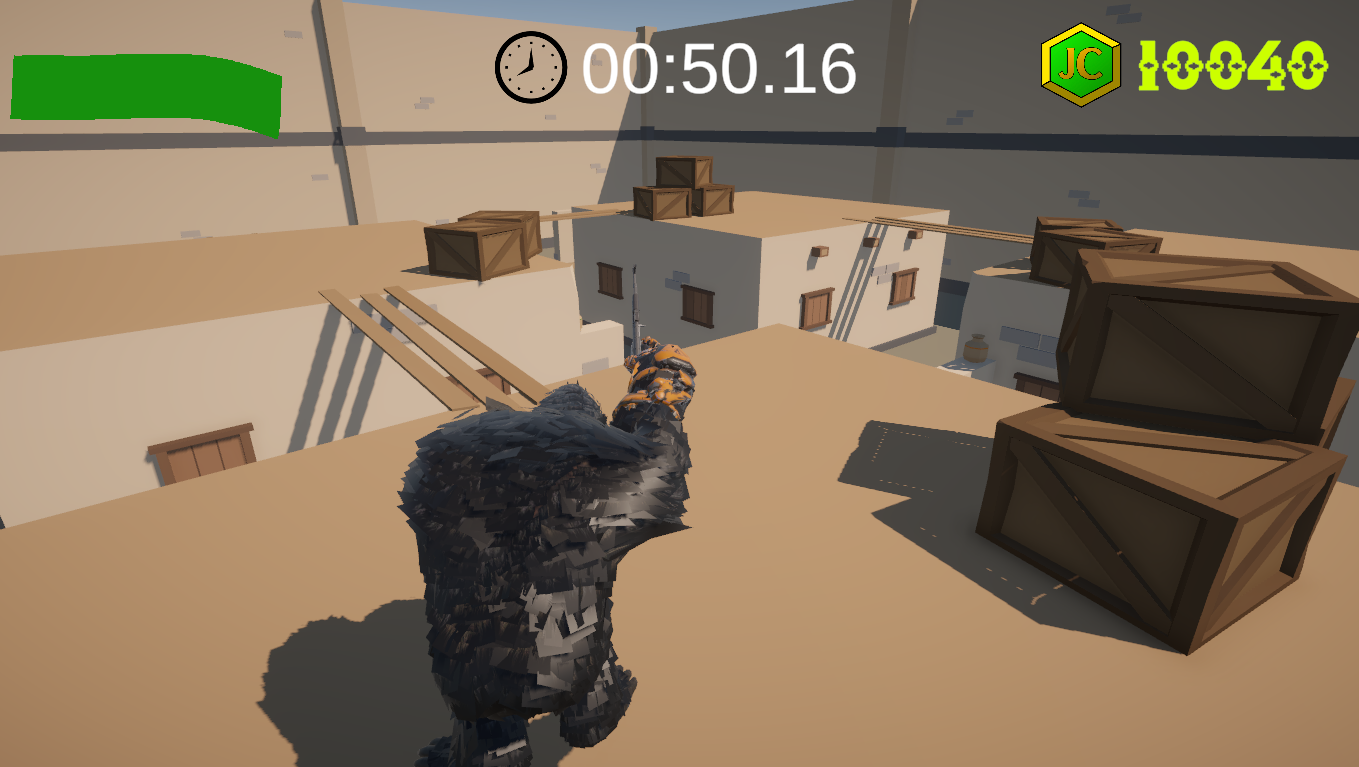 We assume the role of a ferocious gorilla who has broken free from zoo captivity. We are relentlessly pursued by Norwegian military forces who are determined to eliminate us. However, we establish a decisive supremacy over our adversaries, as they are tragically armed only with blades and swords while we wield a superior AK-47 assault rifle.